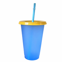 Taza de agua de plástico sensible a la temperatura, Pajita de tubo de agua fría de 24oz, creativa, venta al por mayor, tazas que cambian de color